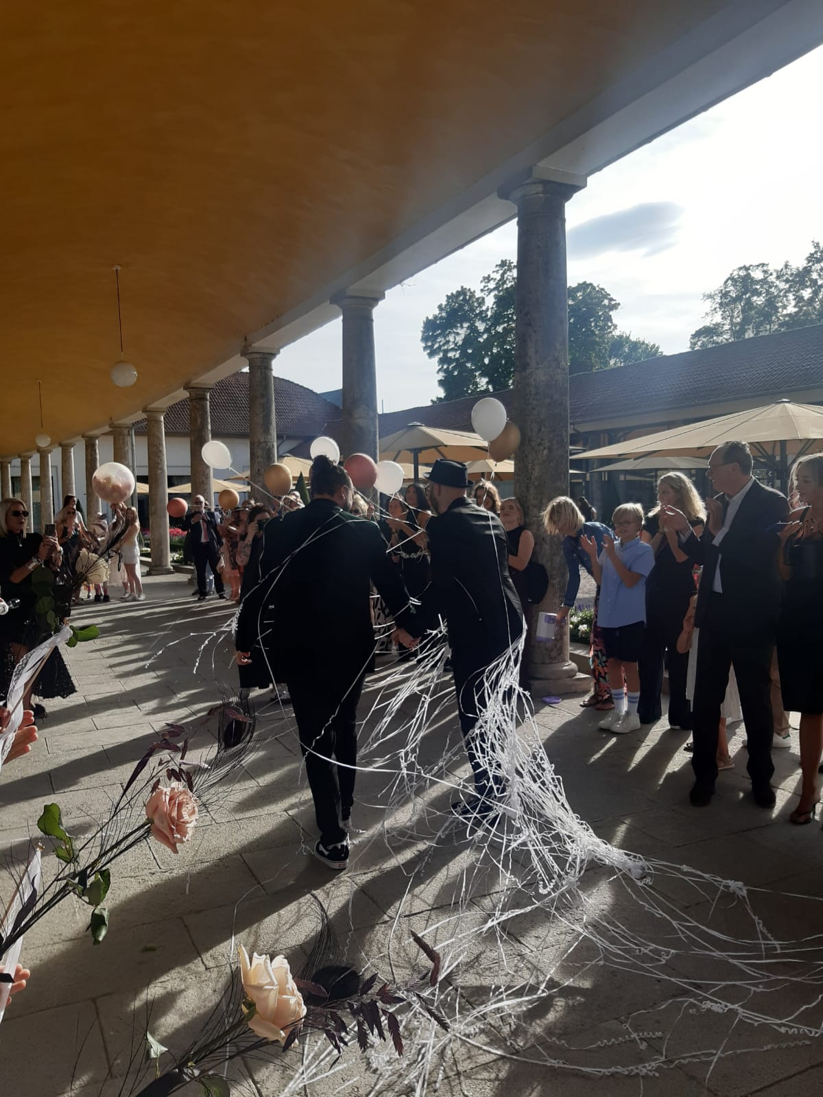 Was für berauschende Feste. Unser geschätzter Leiter der Berufsorientierungsstufe hat sich getraut. Zuerst standesamtlich am 20.09. im kleinen Kreis und dann, eine Woche später, am 27.09.2025 mit großem Tamtam und Liveband. An beiden besonderen Momenten waren einige Vertreter und Vertreterinnen der Hammerwaldschule anwesend, um sich mit dem jungen Brautpaar zu freuen und später ausgiebig zu feiern.