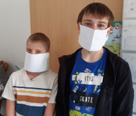 Emanuel und Louis, zwei Schüler der Dependance in Nidda, nutzen die Zeit im Kunstunterricht und bastelten sich eigene Masken. Vielleicht gehen sie bald in die Produktion .