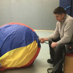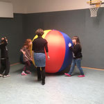 Herr Adolph machte sich gleich ans Werk und pumpte das kleine Sportgerät in Windeseile auf (Danke Markus!). Die G3 durfte den Ball als erstes testen und hatte bereits eine Menge Spaß.