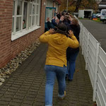 Am Freitag wurde unsere liebe Kollegin Marlene Brückner in den wohlverdienten Ruhestand verabschiedet. Lange wurde überlegt, wie sich die Schulgemeinde trotz aktueller Hygieneregeln angemessen verabschieden könne. Schließlich zogen die unterschiedlichen Kohorten, in ausreichendem Sicherheitsabstand, am Klassenraumfenster der G3 vorbei. Zu fröhlicher Hintergrundmusik wurde gewunken und viele von den Klassen selbst gestaltete Plakate mit Abschiedsgrüßen präsentiert. Zusätzlich wurden Videobotschaften von abwesenden SchülerInnen abgespielt. ...und neben einer geglückten Überraschung für Frau Brückner konnte die Schulgemeinde der Hammerwaldschule nach langer Zeit mal wieder etwas gemeinsam machen.