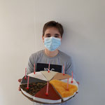 Die Torte ist für einen Mitschüler, der am Freitag Geburtstag hat und zur Zeit nicht in die Schule kommen kann. Wir sagen „Herzlichen Glückwunsch und guten… äh, nein: viel Spaß beim Fühlen“.