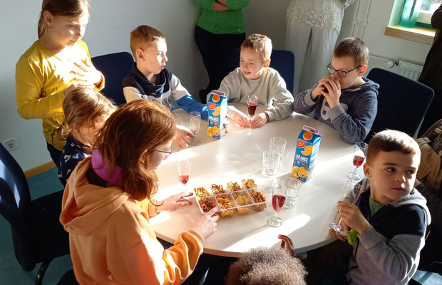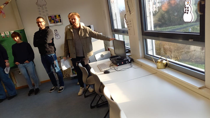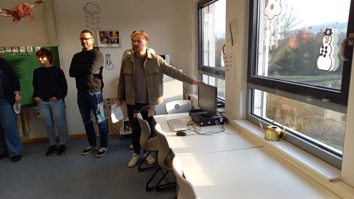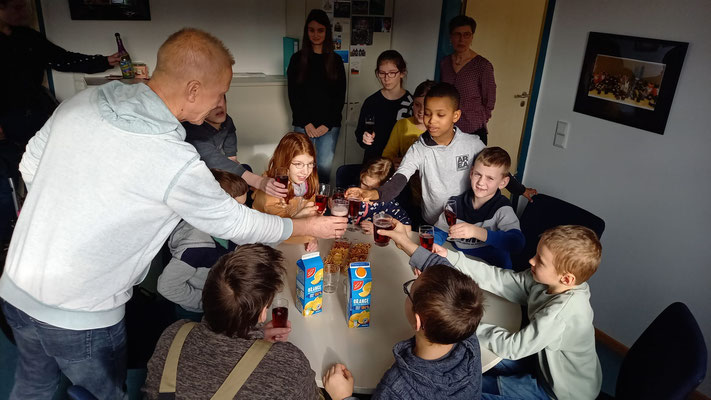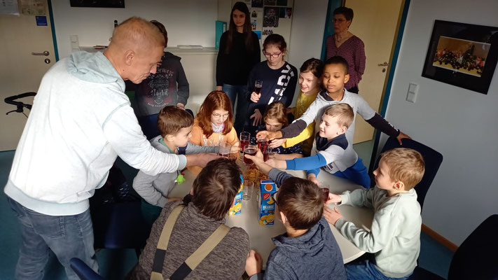 Am 16.2.24 trafen sich die Klassensprecherinnen und Klassensprecher der Grund- und Mittelstufe im Schulleiterbüro. Herr Schauerte und die Kalender-AG haben zur Vernissage eingeladen. Gemeinsam wurden die Kalenderbilder bestaunt und auf den tollen Kalender angestoßen. Es wurden leckere Getränke serviert und zum Knabbern gab es auch etwas.