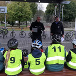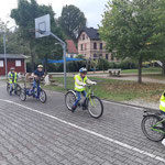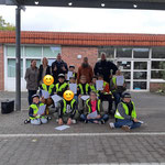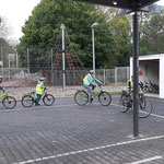 Das ganze Jahr freuen sich die Schülerinnen und Schüler der Grund- und Mittelstufe auf die Jugendverkehrsschule. Vorraussetzung für die Teilnahme ist natürlich sicheres Fahrradfahren. Die Polizisten Dirk Weickert und Holger Göblert kommen schon viele Jahre zu uns an die Schule,um die Schülerinnen und Schüler darin zu unterrichten, wie man sich als Fahrradfahrer verhalten sollte. Diesmal waren es 2 große Lerngruppen mit je 12 Kindern. Es wurde Slalom gefahren, in eine Einbahnstraße gefahren, am Stoppschild angehalten und eine "Baustelle" umfahren. Dabei galt es auf Schulterblicke, Handzeichen und andere Verkehrsteilnehmer zu achten. Die Übungsstunden fanden auf dem Schulhof statt. Am letzten Tag durften alle Kinder ihr gelerntes Wissen anwenden und eine kleine Prüfung absolvieren. Unter großem Applaus nahmen alle Teilnehmer und Teilnehmerinnen ihre Urkunde entgegen. Alle haben die Prüfung bestanden.