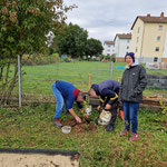 Dank einer großzügigen Pflanzenspende des Gartencenter Christ konnte die Gartengruppe am Praxistag mehrere Sträucher und kleine Bäume pflanzen. Alle haben fleißig angepackt und Hacke, Spaten und Schaufel geschwungen. So konnten mit ordentlich power alle Pflanzen eingepflanzt werden. Und wenn jetzt noch die Sache mit dem grünen Daumen klappt, dann können im nächsten Sommer viele Beeren geerntet und genascht werden. Denn bei der Spende handelt es sich um Johinnisbeeren, Jostabeeren, Himbeeren und Brombeeren. Mmmhhh lecker