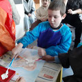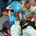 Seit zwei Wochen bearbeiten die G4 & die G2 im gemeinsamen Sachunterricht das Thema Zähne. Die Kinder "putzen" zusammen mit Zahnbürsten und weißer Farbe einen vorher braunen Zahn wieder weiß. Die Handpuppe Poldi und der "Troll-Groll" unterstützten uns dabei und auch ihre Zähne wurden von den Kindern gereinigt.
