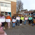 Wir die Klasse M4 haben Frau Merling tschüss gesagt. Sie bleibt der Hammerwaldschule weiterhin treu, doch wechselt von unserem Standort in Hirzenhain nach Nidda. Draußen vor dem Eingang haben wir Plakate hochgehalten, auf den Plakaten steht „FRAU MERLING SOLL BLEIBEN!!! WIR WERDEN DICH VERMISSEN". Dazu haben alle gerufen „FRAU MERLING SOLL BLEIBEN". Zum Abschied haben wir Frau Merling umarmt. Die Klasse M4 wünscht dir alles Gute in Nidda.