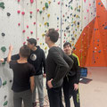 Die HWS-Gruppe fuhr mit Herrn Beck und Herrn Lambie im Kleinbus in die Lahnstadt, um sich dort mit Herrn Zander zu treffen. Gemeinsam betrat man die heiligen Kletterhallen. Die jungen Männer staunten nicht schlecht, als sie die 14-15 Meter hohen Wände sahen. "Da sollen wir hoch?","WOW, das ist hoch!" waren häufig zu hörende Aussagen.