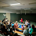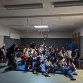 Gemeinsam wurde die Geschichte von Sankt Martin gehört und nachgespielt. Auch hier erfreuten das Pferd und die Verkleidung bestehend aus Schwert, Schild und rotem Mantel die Anwesenden. Gemeinsam sangen die sechs Klassen Laternenlieder, während sie ihre Laternen zu den leuchtenden Lichter der Grundstufenschülerinnen und -schüler dazustellten. In der Dunkelheit leuchtete nun ein kleines Meer an Lichtern und verbreitete eine andächtige Stimmung.