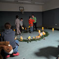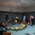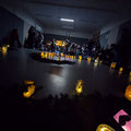 Anschließend sang die Grundstufe Laternenlieder. Die Kinder stellten nacheinander ihre Laternen in das Laternengärtchen. Am Ende erstrahlte das Laternengärtchen in hellem Licht.