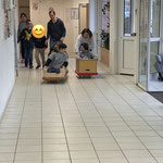Was sonst eher nicht gerne gesehen wird, war kurze Zeit fester Bestandteil des Morgens: Wettrennen auf den Fluren der Hammerwaldschule.