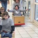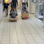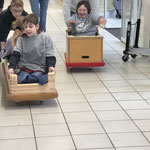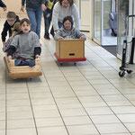 Im Zuge der wöchentlichen Bewegungslandschaft, drehte Herr Beck diese Woche zwei Kisten um und stellte diese auf Rollbretter. Diese heißen "Rennautos" wurden sofort genutzt, um das ein oder andere Wettrennen zu starten. Die Kinder hatten ihren Spaß und waren voll bei der Sache, so dass diese Option vielleicht auch nächsten Mittwoch noch einmal gezogen wird :-)