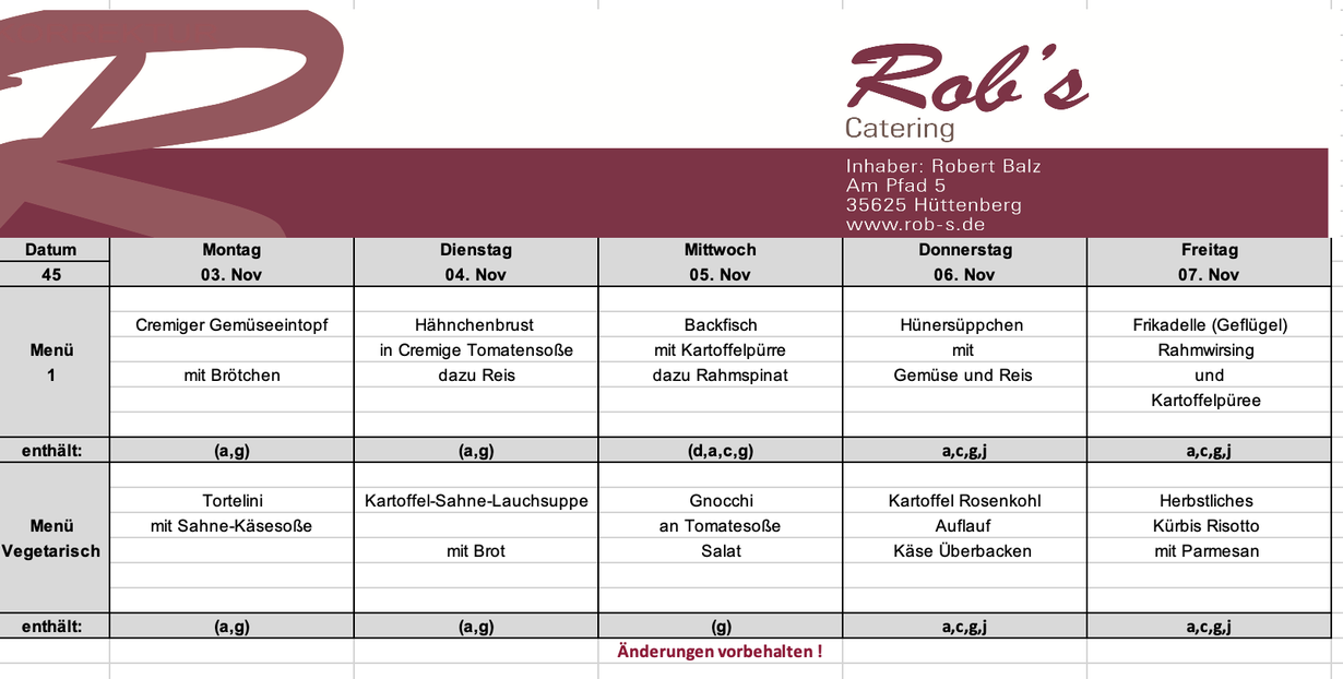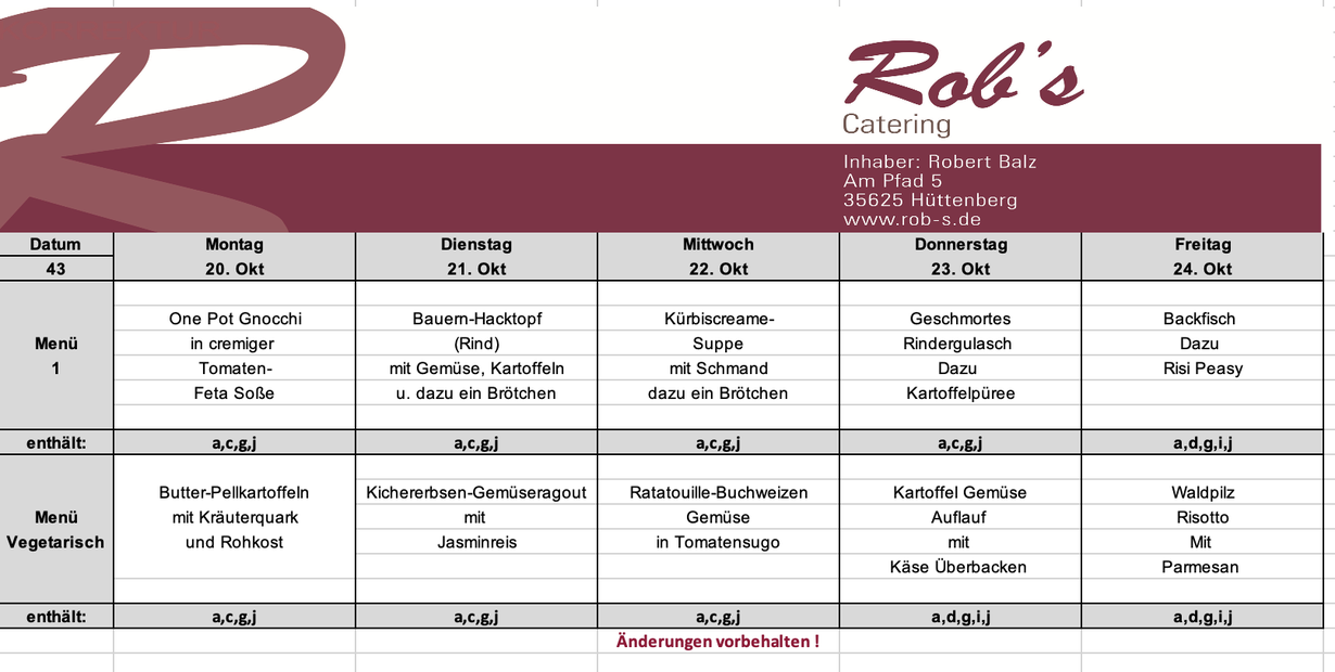Aktuelle Speisepläne aus Hirzenhain und Nidda